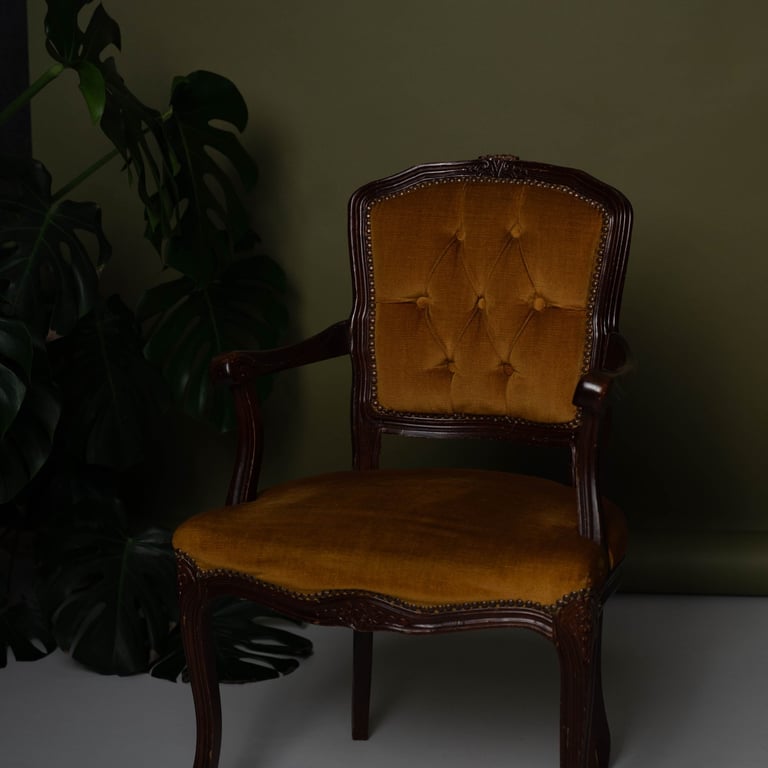 Baroko stiliaus antikvarinis krėslas.